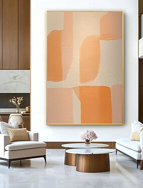 Абстрактная картина ручной работы в оранжево-бежевых тонах, настенное панно, масляная живопись, выжженный оранжевый, нейтральный, современная живопись, абстракция, искусство середины века.