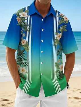 Муж. Полоски Тропические цветы Пальмовый лист Гавайские рубашки Тропические рубашки Рубашка Алоха С короткими рукавами Гавайский Пляжный отдых Лето Отложной 3D