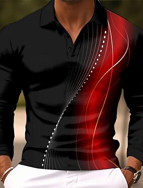 Муж. геометрический Линии Поло Длинный рукав Футболки поло Рубашки с воротником Спортивная одежда Одежда для спорта и отдыха На каждый день 3D печать Весна Осень Зима Черный Красный Морской синий