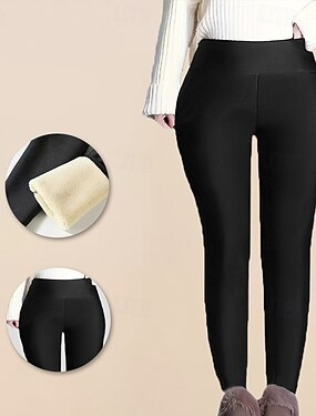 Жен. Штаны из шерпы Зимние теплые толстые леггинсы Завышенная Тренажерный зал Спортивная Пилатес Нижняя часть Сплошной цвет Черный Зима Виды спорта Спортивная одежда