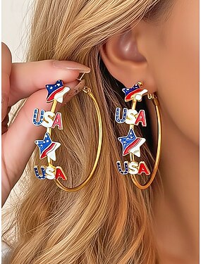 Серьги-кольца для женщин приуроченные к 250-летию с тематикой США красные белые и синие звезды идеально подходят для Дня независимости и повседневной носки