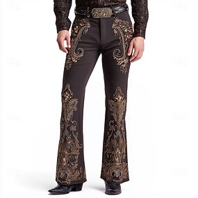 Муж. Огурцы Цветочный принт Этнический Диско Брюки Брюки-клеш 60-х 70-х годов Нормальная Западный Винтаж Ретро на открытом воздухе Отпуск Повседневные Боковые карманы Расклешенные брюки Весна Осень