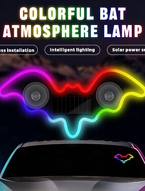 Автомобильные солнечные вакуумные неоновые габаритные огни в форме летучей мыши, беспроводные, перезаряжаемые через Type-C, 8 режимов, светодиодная подсветка салона автомобиля. &экстерьер, вечеринка,