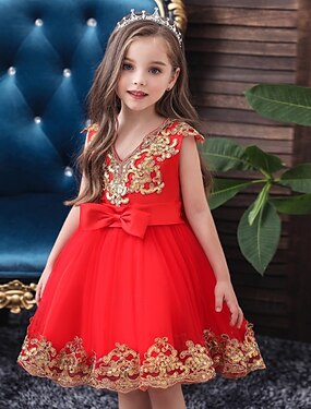 Детское праздничное платье Девочки Официальное платье Свадебный наряд Для вечеринок Свадьба Официальные Мода Очаровательны Принцесса Пэчворк Вышивка Цветочный принт Без рукавов V-образный вырез