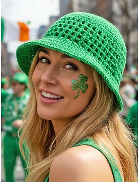 Женская вязаная панама, доступна в нескольких цветах, идеально подходит для празднования Дня Святого Патрика, удобная и стильная для повседневной носки.