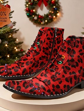Женские красные модные ботинки на шнуровке и блочном каблуке — стильные, удобные, идеально подходят для Рождества, праздников и повседневной носки.