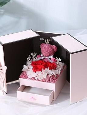 Подарок для мамы в виде мишки из роз, памятный сувенир вечной любви с навсегда сохраненными розами. &Подарочная коробка, плюшевый мишка с розами для женщин – подарки на годовщину, день рождения для