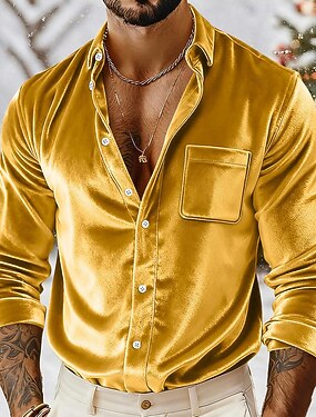 Муж. Рубашка Повседневная рубашка Кнопка рубашка Рождественская рубашка Бархатная рубашка Синий Черный Желтый Красный Зеленый Длинный рукав Сплошной цвет Рубашечный воротник Карнавал Рождество Карман