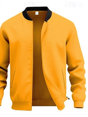 Муж. Легкая куртка Повседневная куртка Отпуск Повседневные Дышащий Карман Весна Осень Полотняное плетение Мода Классика Воротник-стойка Обычная Черный Желтый Красный Темно синий Насыщенный синий
