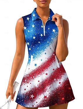 250-летие Америки День независимости Жен. Флаги Теннисное платье Спортивное платье Без рукавов Молния С принтом Дышащий Теннис Гольф Бадминтон Воротник-поло Воротник на молнии Платья Красный + синий