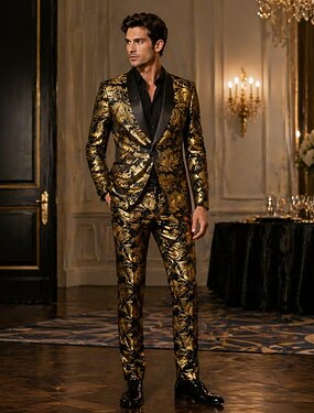 Набор Ретро В стиле 1980-х Брюки Верхняя одежда Длинные рукава барин Жаккард Цветочный принт Маскарадный костюм Муж. Маскарад Для вечеринок Коктейльная вечеринка Взрослые Пальто Брюки Все сезоны