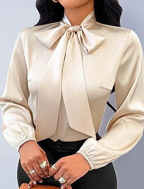 Жен. Рубашка Атласная блузка Сплошной цвет Полотняное плетение Элегантный стиль Мода На каждый день Длинный рукав галстук-шея Обычные топы Уличная одежда Офис Красный Зеленый Абрикосовый