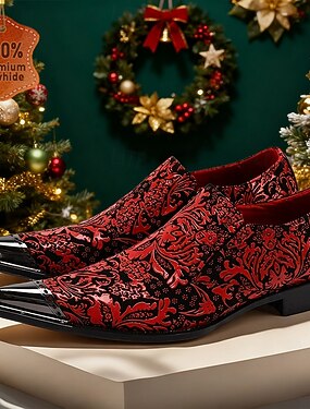 Мужские туфли-лоферы из натуральной кожи красного цвета с острым носком и изысканной отделкой – элегантная рождественская обувь для официальных и полуофициальных мероприятий