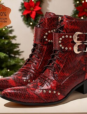 Мужские красные кожаные ботинки с рисунком питона, с двойными пряжками, металлическим носком и заклепками, вестерн-сапоги из 100% коровьей кожи для сцены и вечеринок