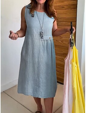 Жен. Платье средней длины Искусственный хлопок и лен Повседневное платье Элегантный стиль Мода Современное Повседневные на открытом воздухе Отпуск Свободное облегание Полотняное плетение