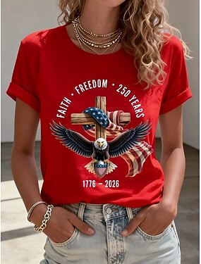 День независимости США Жен. Футболка С принтом Графика Американский флаг Винтаж Стиль Классика С короткими рукавами Вырез под горло Обычные топы Повседневные выходные Синий Черный Белый Красный