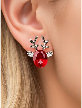 женские рождественские серьги в виде оленей — элегантный дизайн с красными кристаллами и серебряными рогами для праздничных вечеринок и торжественных случаев, доступны в разных цветах