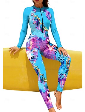 Жен. Стандартный Рашгард Рашгард на все тело Купальный костюм Градиент Океан со встроенным бюстгальтером Передняя молния УФ-защита от солнца Закрытая чашечка UPF50+ Длинный рукав Чехол Купальники Боди