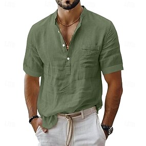 Муж. Льняная рубашка Поповер Рубашка Летняя рубашка Одежда для пляжа Рубашка с воротником-стойкой Полотняное плетение Повседневные Пляж Синий Черный Белый Розовый С короткими рукавами Воротничок Лето