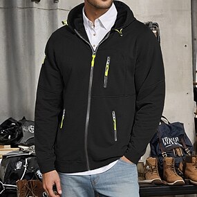 Муж. Толстовка Толстовка с капюшоном на молнии Черный Белый Винный Военно-зеленный Темно синий Капюшон Полотняное плетение Застегнуться Пэчворк Передний карман