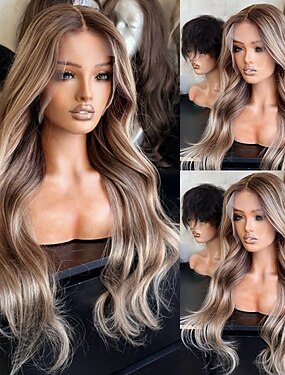 Натуральные волосы Закрытие 5x5 13x4 Кружева Фронт Парик Средняя часть Бразильские волосы Волнистый Блондинка Коричневый Разноцветный Парик 150% 180% Плотность волос