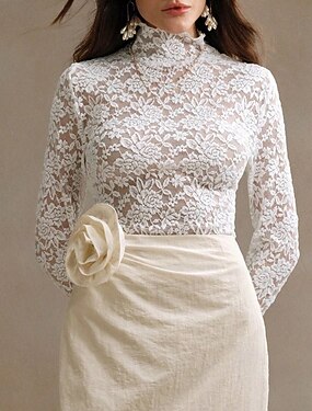 Жен. Блуза Кружевные топы Кружева Полотняное плетение Стиль Длинный рукав Хомут Обычные топы Повседневные Праздники На выход Белый Весна Осень