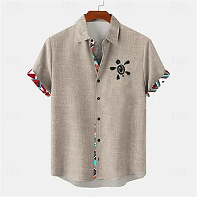 Муж. Геометрический принт Льняная рубашка Гавайская рубашка Кнопка рубашка С короткими рукавами Винтаж Ретро Отпуск Повседневные Праздники Лето Весна Отложной 3D