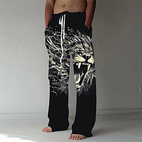 Муж. Штаны Летние штаны Пляжные штаны Эластичный шнурок Передний карман Прямая нога Животное Лев Графические принты Комфорт Мягкий Повседневные Мода Оригинальный рисунок Черный Зеленый