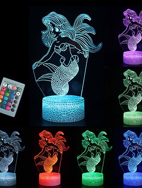 3d иллюзия русалки ночные огни настольная лампа с питанием от usb 16 цветов светодиодная ночная лампа с умным прикосновением идеально подходит для девочек русалка подарок на день рождения декор