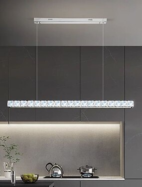 Потолочный светильник для кухонного острова с прозрачным хрусталем, материалом из горного хрусталя, геометрическим креплением, абажуром правильной формы, 3-цветной подсветкой и регулируемой длиной