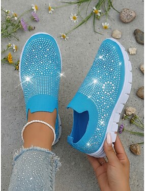 Женские розовые спортивные кроссовки без шнурков со стразами - дышащий верх из материала Flyknit, легкие &Блестящие повседневные спортивные кроссовки для ходьбы, бега трусцой, путешествий и