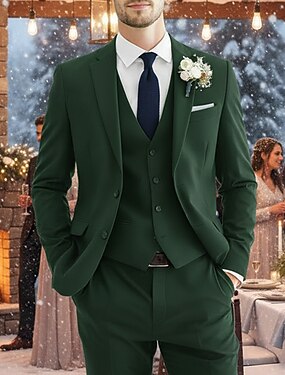 Повседневные костюмы для мужчин на День Святого Патрика с лацканом шалфейный темно-зеленый модный праздник однотонный классический двубортный на две пуговицы