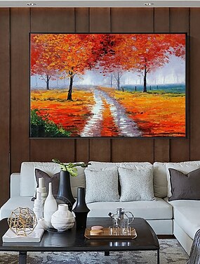 ручная роспись маслом холст настенное искусство украшение современный осенний пейзаж золотая дорога для домашнего декора свернутая бескаркасная нерастянутая картина