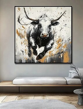 Картина маслом ручной работы, акриловый холст, настенное искусство, украшение для дома, картина маслом с изображением животного, черно-белый бегущий бык, для домашнего офиса, отеля, клуба, декора,