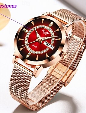 Женские кварцевые часы — это модный, повседневный и элегантный аксессуар, украшенный стразами и оснащенный люминесцентным циферблатом с двумя календарями, что делает их лучшим подарком для женщин.