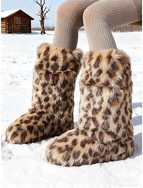 Женские зимние сапоги с искусственным мехом и леопардовым принтом – уютные и стильные, удобные зимние сапоги на толстом каблуке для холодной погоды, повседневной носки и активного отдыха