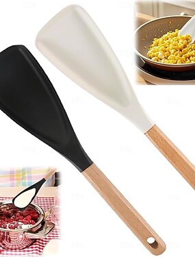 многофункциональная ложка-лопатка с эргономичной деревянной ручкой - прочная и безопасная антипригарная кухонная утварь для приготовления, подачи, переворачивания блинов, помешивания супа, замешивания