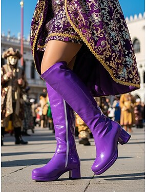 Женские фиолетовые лаковые платформенные ботинки с блоком каблука для Марди Гра — идеально подходят для карнавала фестивального наряда костюмированных вечеринок и смелых модных решений
