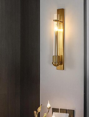 Настенный светильник для помещения, металлический стеклянный светильник, роскошный креативный светильник для гостиной, ТВ, фоновая стена, прикроватная, теплый свет, 1 лампа, 60*8*10 см, 110-120 В,