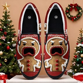 Мужские рождественские туфли-слипоны в виде пряничного человечка – праздничный 3D-дизайн в виде пряничного человечка, веселые и удобные, отлично подходят для праздничных вечеринок и рождественских мероприятий