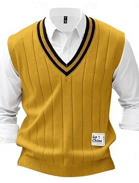 Муж. Свитер жилет Платье-свитер Пуловер Свитер Жилет Вязаный свитер Рельефный узор Вязать Обычные топы Трикотаж Рельефный узор Полотняное плетение V-образный вырез Мода На каждый день