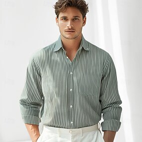 Муж. Полосатой рубашке Черный Синий Зеленый Светло-серый Длинный рукав Полоски Рубашечный воротник Школа Свадьба Одежда 100% хлопок Отпуск Винтаж Нейтральный Мода