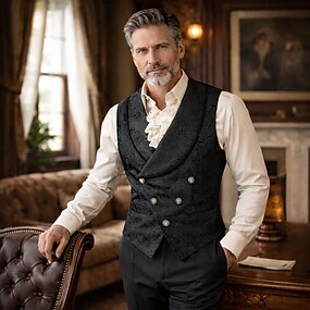 Готика Викторианский стиль Средневековый Жилет Без рукавов Вампиры барин Дворянин Жаккард Клёш от бедра Маскарадный костюм Муж. Королевский Хэллоуин Карнавал Ярмарка Возрождения РИЖД Взрослые Жилетка