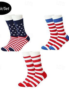 Муж. 3 пары Носки Носки для бега Повседневные носки Синий Красный Цвет Звезды и полосы Повседневные на открытом воздухе Отпуск Средней плотности Все сезоны Мода Уличный стиль