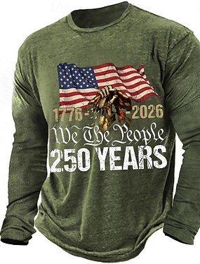 4 июля 2026 года 250-я годовщина Дня памяти Мужская дизайнерская футболка с 3D-принтом с американским флагом с круглым вырезом и длинными рукавами для повседневного ношения на улице