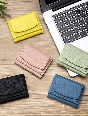 Складной мини-кошелек в японском стиле с текстурой личи, женский держатель для карт, кошелек для монет, компактный маленький кошелек для студентов, стильный и практичный для повседневного