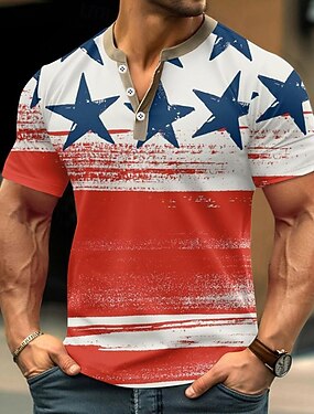 4 июля 2026 года 250-й день памяти Мужская винтажная дизайнерская футболка-хенли с коротким рукавом Повседневный уличный стиль
