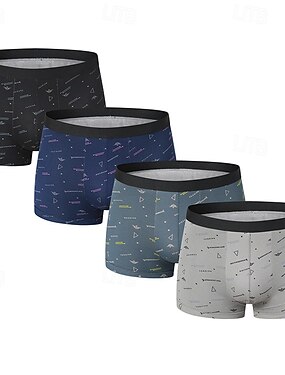 Муж. Комплект поставки 4 шт. Базовые трусики Боксеры Брифы Эластичная талия Терилен Воздухопроницаемость Удобный Графика Синий Черный
