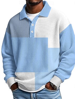 Муж. Геометрический принт Контрастных цветов Рубашки-поло из вафельной ткани Текстура Длинный рукав Футболки поло Лацкан Спортивная одежда На каждый день