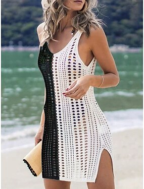 Жен. Купальники Накидка купальник Бахрома Подол Отпуск Одежда для пляжа Полотняное плетение Круглый вырез Длинный рукав Купальники